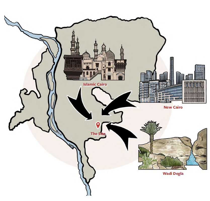 Murooj is a high-end residential community in the Mokattam neighborhood of Cairo. It consists of twelve 8-10 storey residential buildings laid out around a central green plaza.